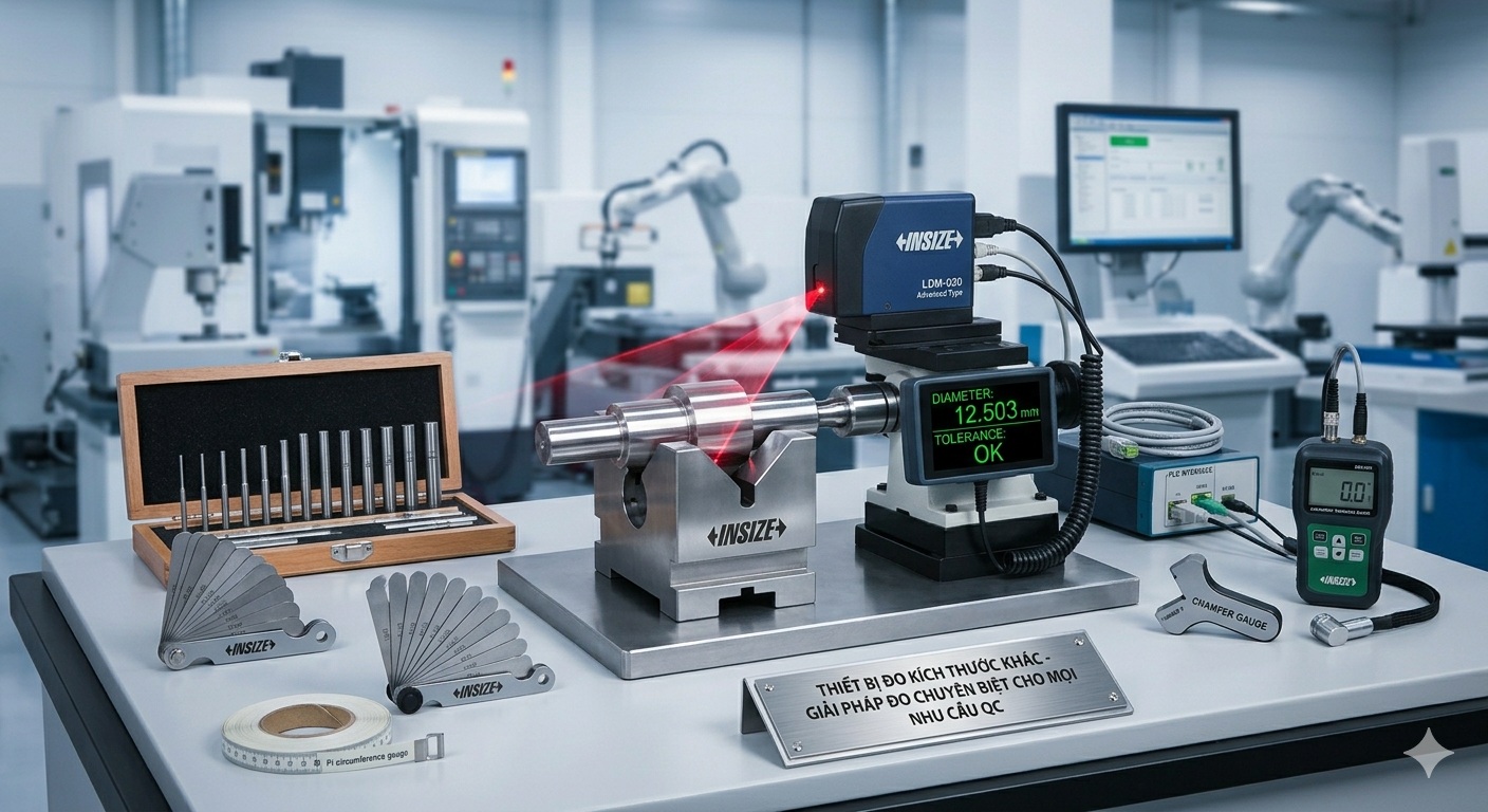 Trong hệ thống đo lường hình học (Dimensional Metrology), bên cạnh các dụng cụ phổ biến như thước cặp hay panme, luôn tồn tại những nhu cầu kiểm tra đặc thù đòi hỏi các thiết bị chuyên dụng. Danh mục Thiết bị đo kích thước khác của INSIZE chính là “mảnh ghép” hoàn thiện, cung cấp các giải pháp đo lường cho những chi tiết có hình dạng phức tạp, vật liệu đặc biệt hoặc yêu cầu quy trình kiểm tra tự động hóa cao.