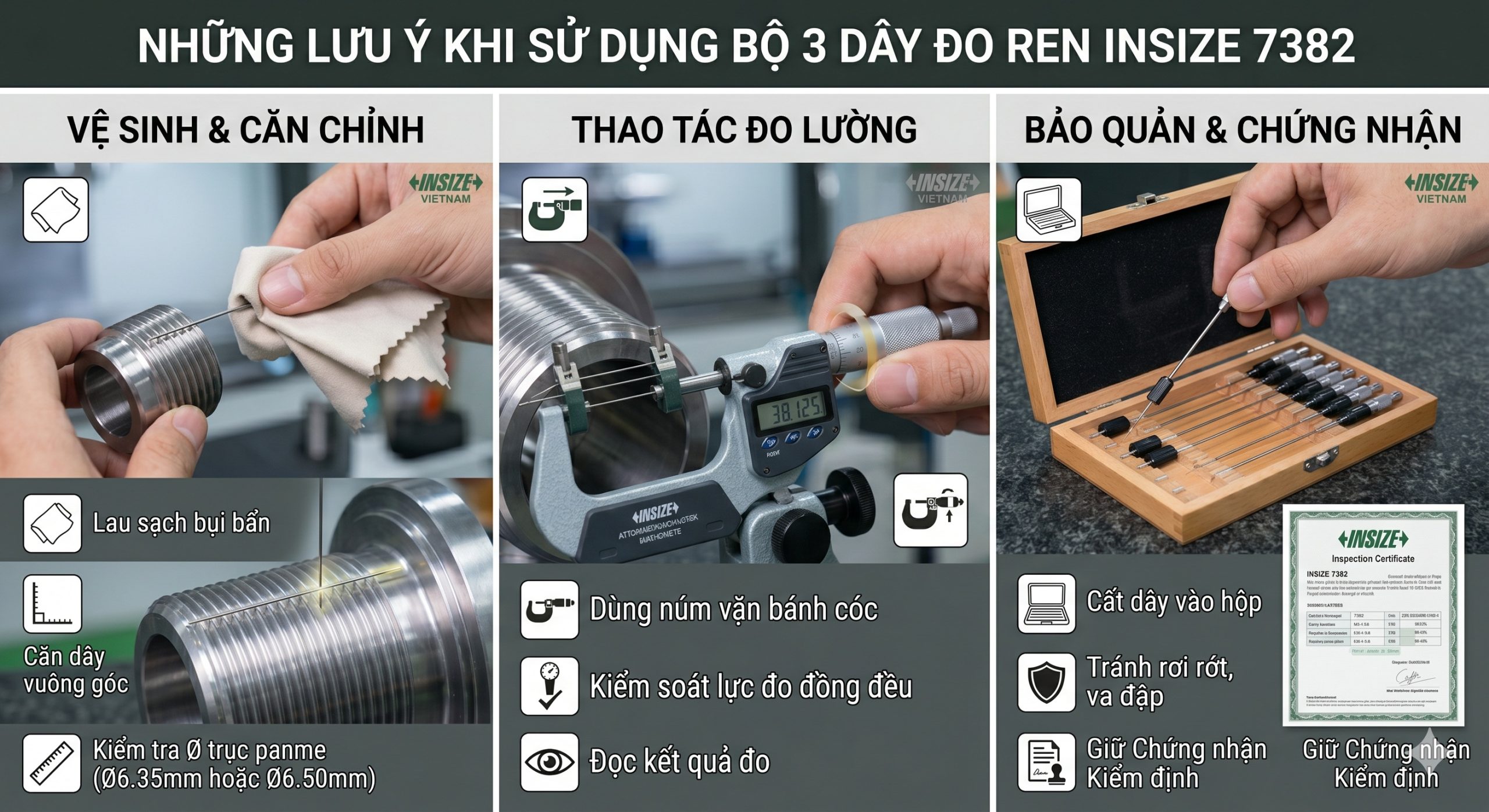 NHỮNG LƯU Ý KHI SỬ DỤNG BỘ 3 DÂY ĐO REN INSIZE 7382
