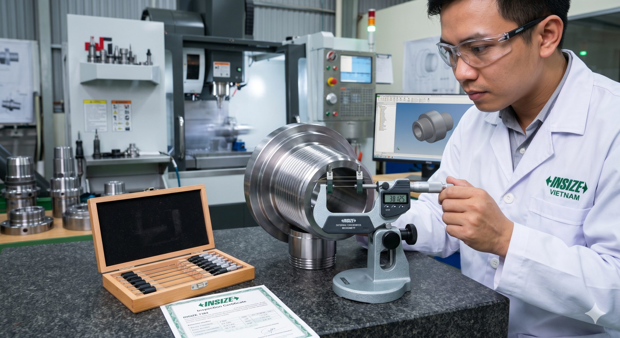 Trả lời: Để tránh mua phải hàng trôi nổi không đảm bảo độ cứng HRC60 và thiếu chứng nhận kiểm định, quý doanh nghiệp nên liên hệ trực tiếp với Insize Việt Nam. Chúng tôi là đơn vị ủy quyền phân phối chính thức, cam kết cung cấp hàng chính hãng 100%, đi kèm đầy đủ chứng từ xuất xứ (CO), chứng nhận chất lượng (CQ), Inspection Certificate. Đặc biệt, đội ngũ kỹ sư của chúng tôi luôn sẵn sàng hỗ trợ tư vấn chọn đúng mã sản phẩm, hướng dẫn phương pháp đo lường và cung cấp hóa đơn chứng từ hợp lệ, nhanh chóng cho doanh nghiệp.