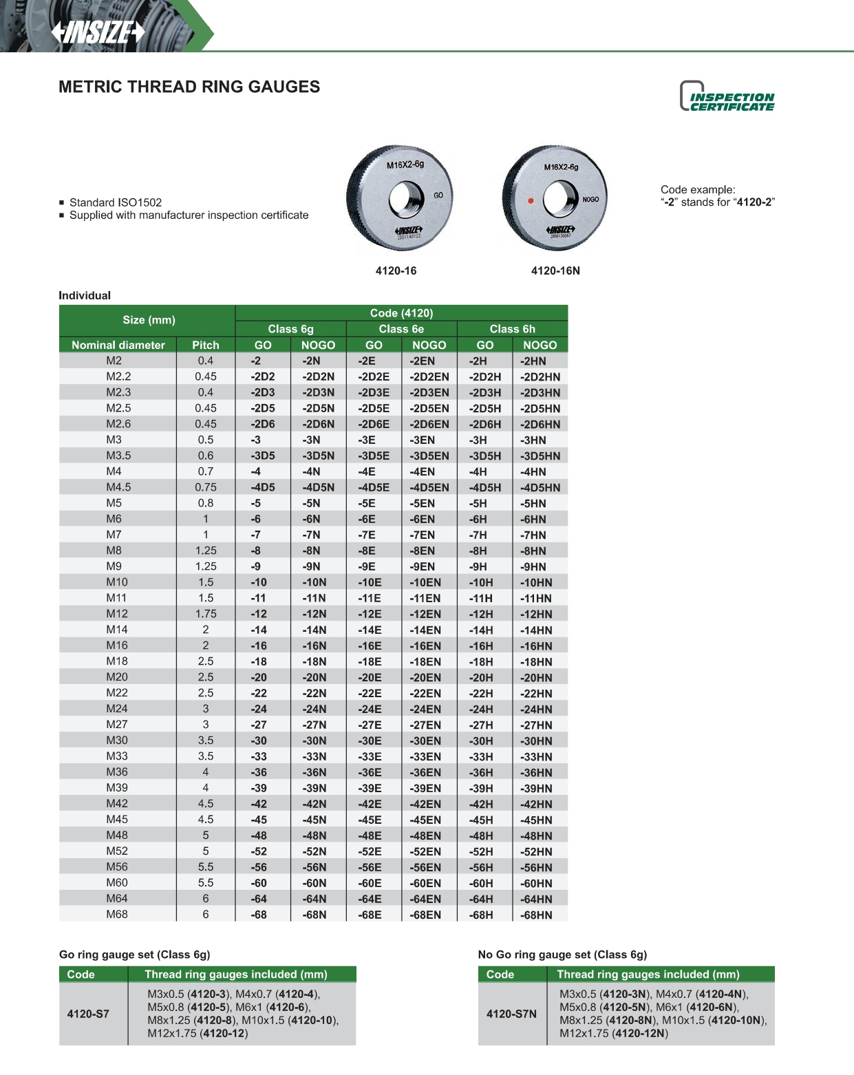 Để đáp ứng các yêu cầu khắt khe nhất trong gia công cơ khí chính xác, dòng sản phẩm Metric Thread Ring Gauges Insize Series 4120 được thiết kế dựa trên hệ thống tiêu chuẩn đo lường quốc tế với các dải thông số cụ thể như sau: