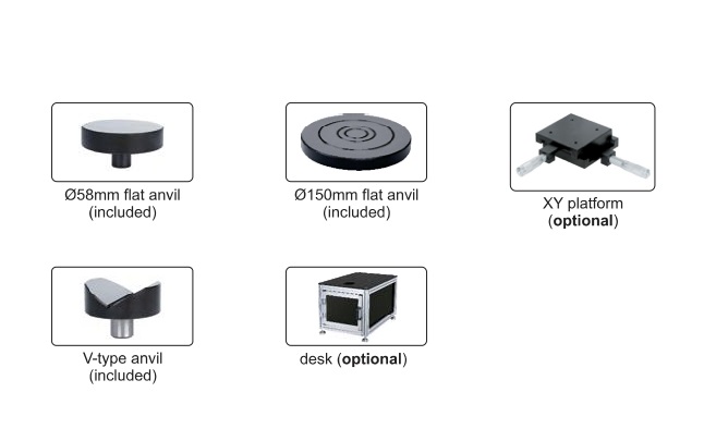 Bàn sa trượt XY giúp di chuyển mẫu theo trục X và Y một cách chính xác (thay vì đẩy bằng tay). Phụ kiện này bắt buộc cần thiết nếu bạn muốn đo diễn tiến độ cứng (ví dụ: đo nhiều điểm thẳng hàng để kiểm tra lớp thấm tôi).