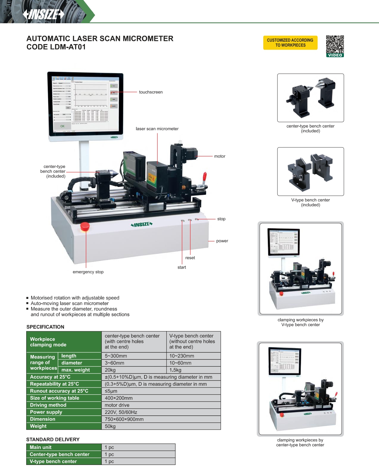 Thông Số Kỹ Thuật Chi Tiết - Hệ Thống Panme Quét Laser Insize LDM-AT01