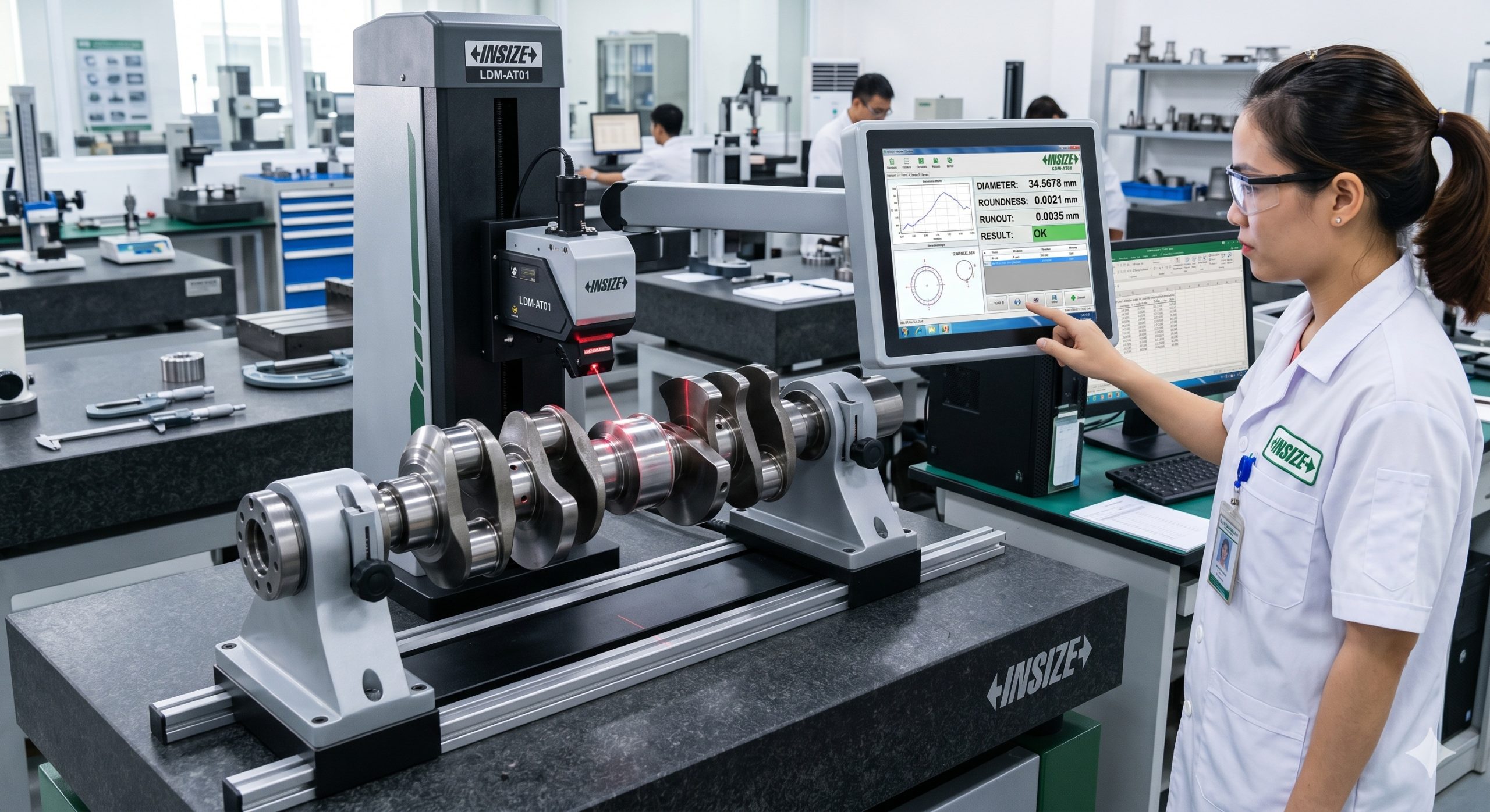Hệ Thống Panme Quét Laser Tự Động Insize LDM-AT01 – Giải Pháp Đo Đường Kính Ngoài, Độ Tròn Và Độ Đảo Trục Chuyên Dụng Độ Chính Xác Cao