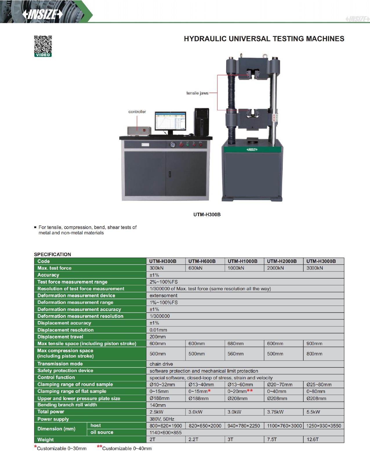 Máy Kéo Nén Vạn Năng Thủy Lực Insize UTM-H (300kN – 3000kN) – Servo, Chuẩn ISO 7500-1, Hàng Chính Hãng