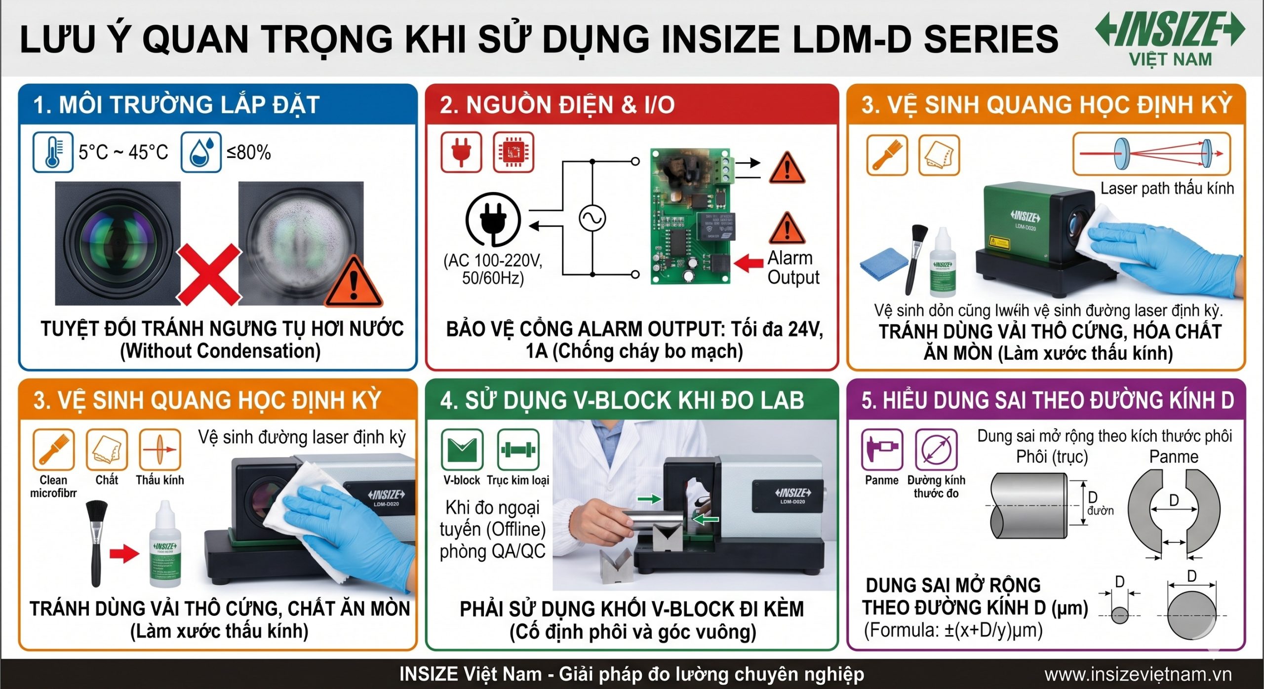 Để khai thác tối đa hiệu suất, độ bền và duy trì độ chính xác cao nhất cho dòng máy đo lường quang học Insize LDM-D Series, các kỹ sư và người vận hành tại nhà máy cần đặc biệt tuân thủ các lưu ý kỹ thuật dưới đây: