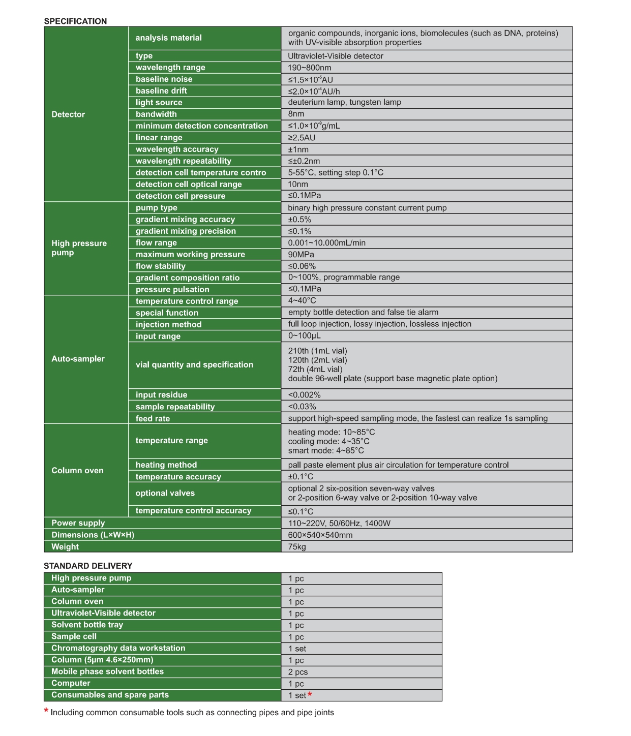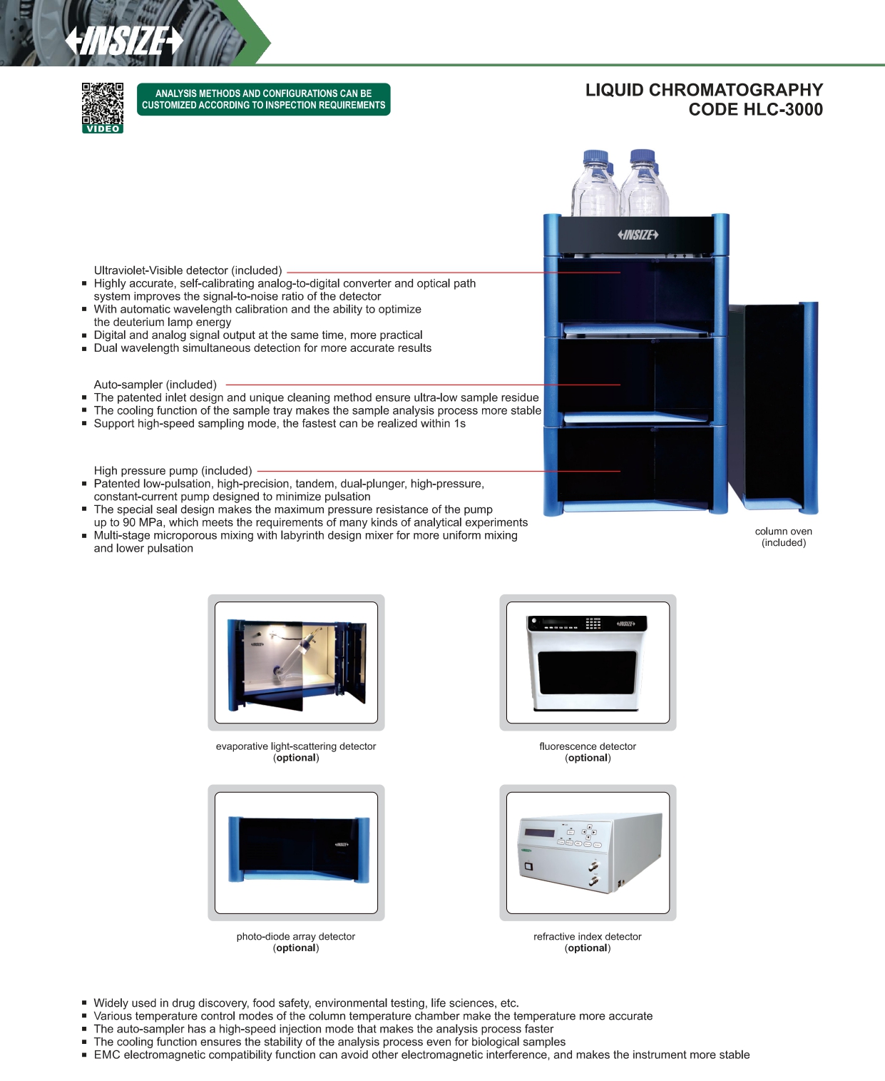 THÔNG SỐ KỸ THUẬT CHI TIẾT MÁY SẮC KÝ LỎNG INSIZE HLC-3000
