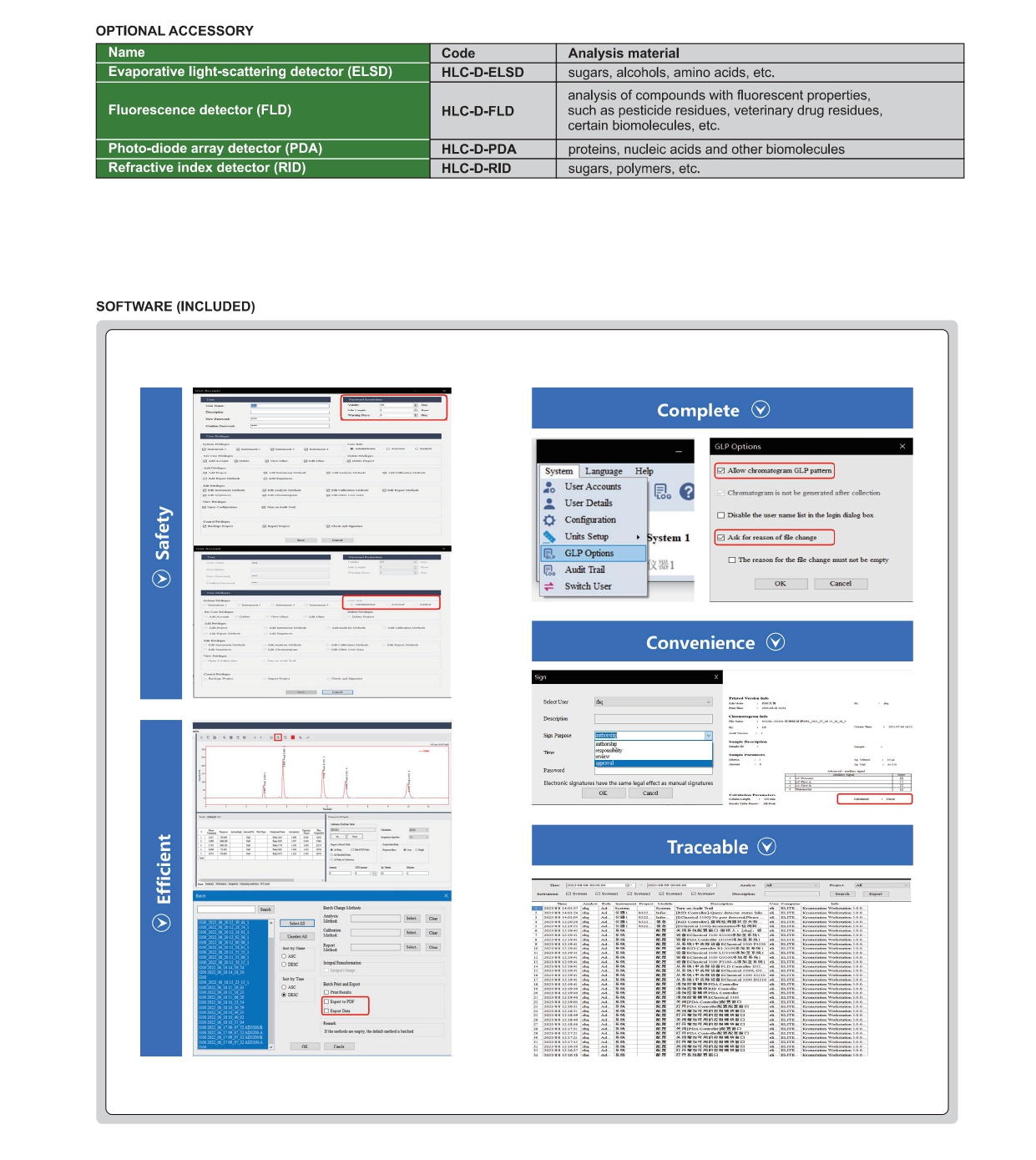 8. Phần mềm của máy sắc ký HLC-3000 có tuân thủ tiêu chuẩn quản lý phòng thí nghiệm (GLP) không?