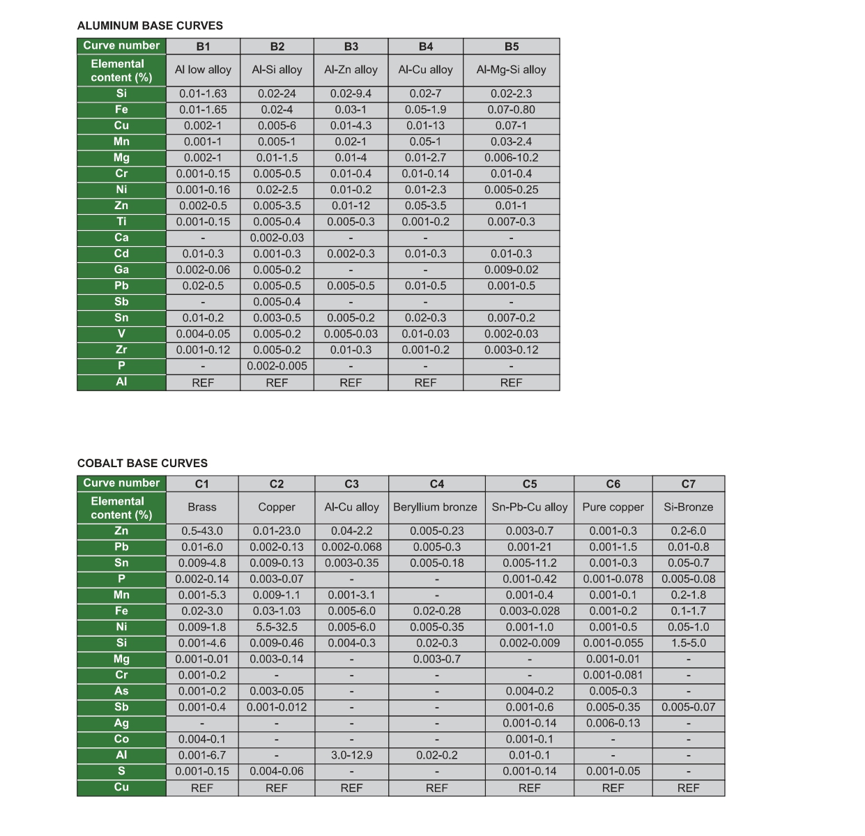 OES-P200 hỗ trợ đa dạng các ma trận kim loại (Matrix) với các gói đường chuẩn được cài đặt sẵn hoặc tùy chỉnh theo yêu cầu: